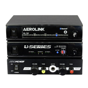 We will supply the package with a set of 2 x 21 metre long audio cables to connect the speakers back to the Mini Mixer. Once the levels have been set, all the instructor has to do is to pair up their smartphone to the AeroLink, press Play and start talking!